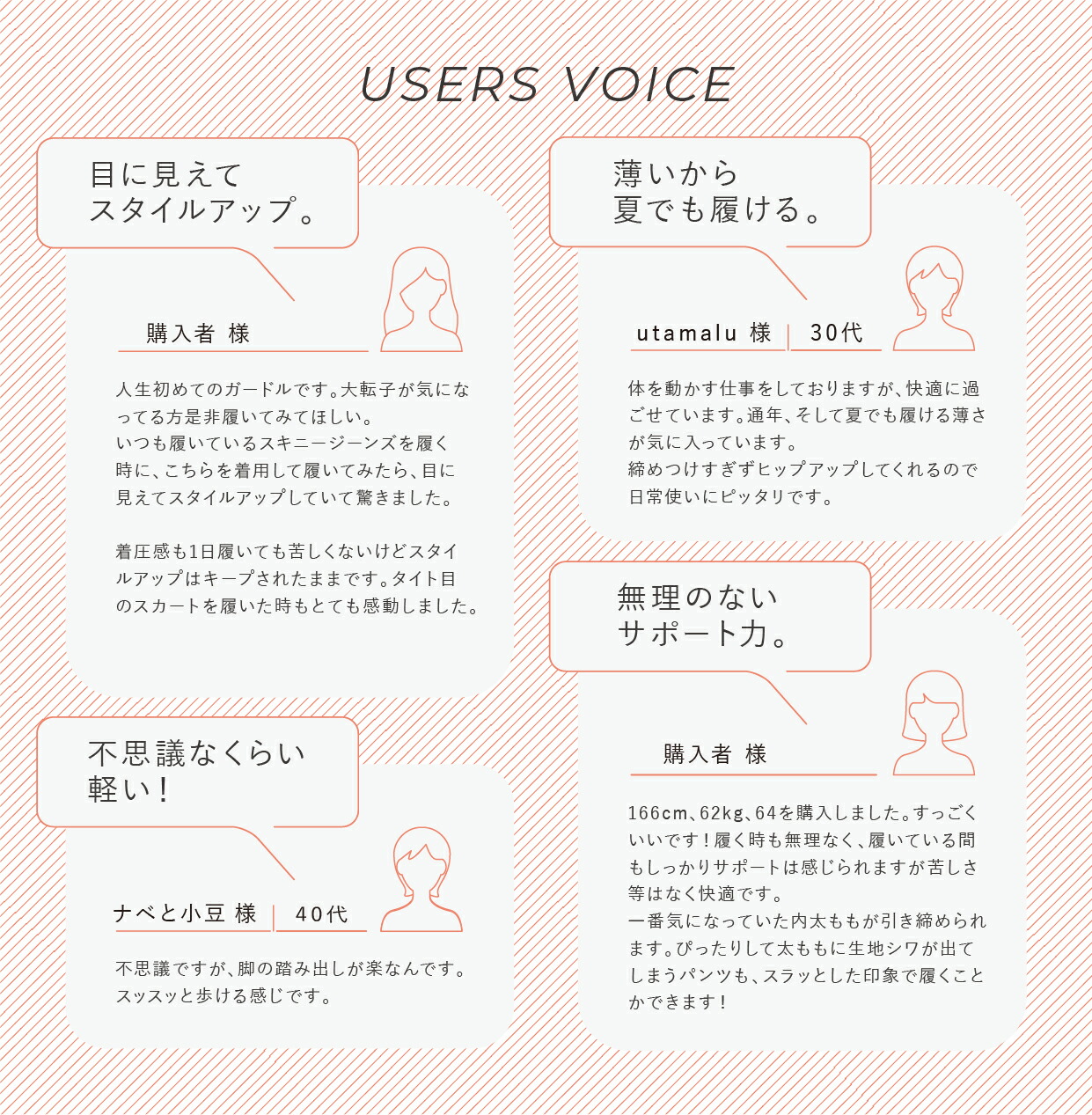 骨盤のサポート力もあり、履いていて気持ちが良いです。