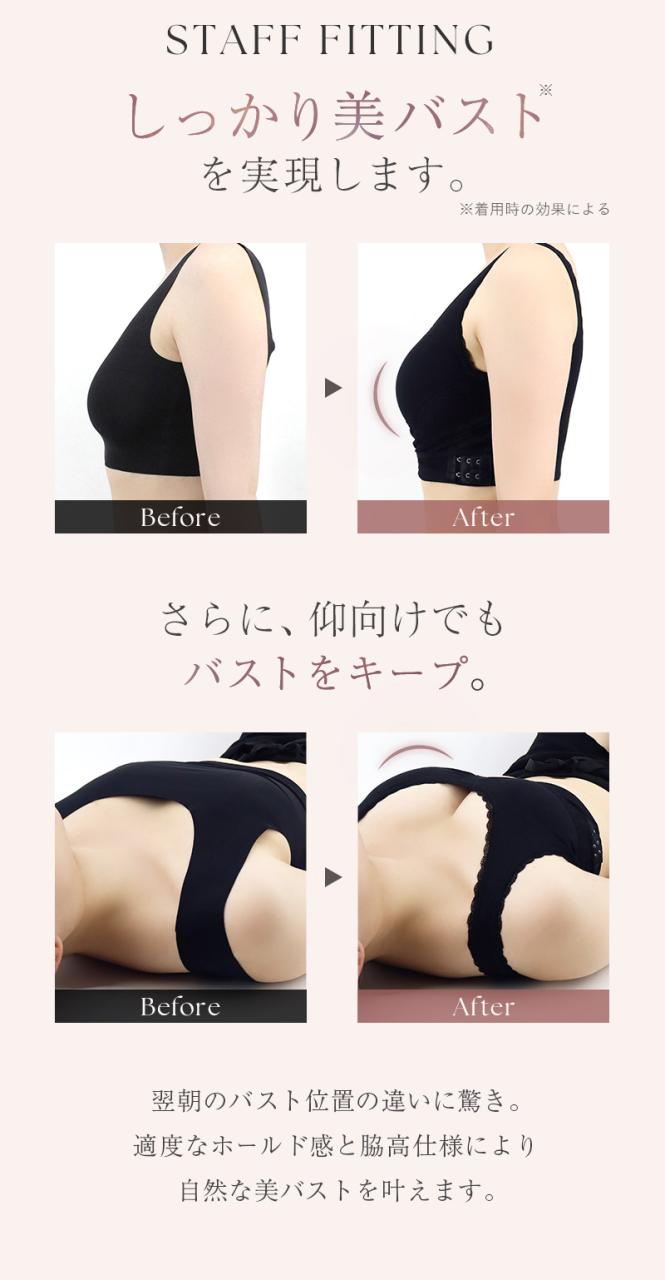 肌馴染みのよい素材なのが一番気に入りました。無理なくバストを包み込んでくれて、仰向けになってもバストが流れるようなことはありませんでした。