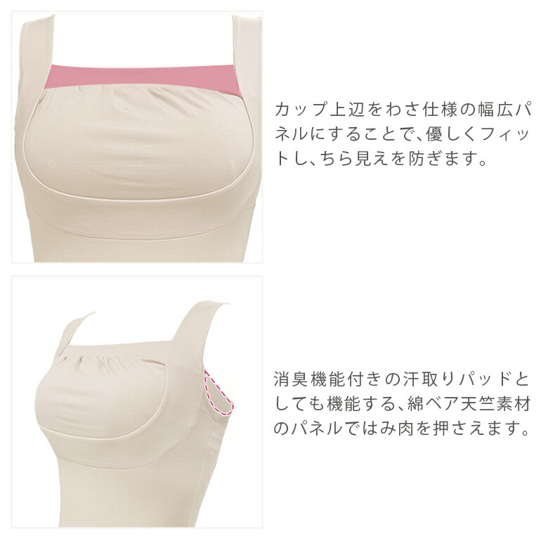 仕事で汗をかくので、こちらのブラキャミを購入しました。