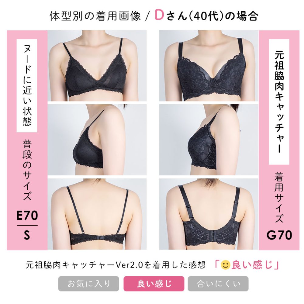 先日F70を買って、まだ流れた肉(年齢的にも皮か…笑)が入るぞ!って感じだったので、もうワンカップあげてみました。 かなり痩せてしまったのですが、しっかりキャッチしてくれて、綺麗に納めてくれました。 本当にここのブラがNo.1です。